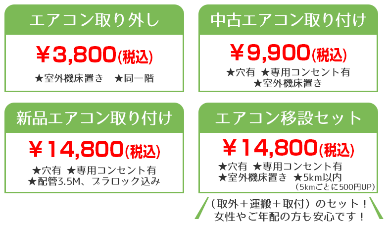 低料金にてエアコン工事を行っています。低料金でありながら丁寧・確実・スピーディー。